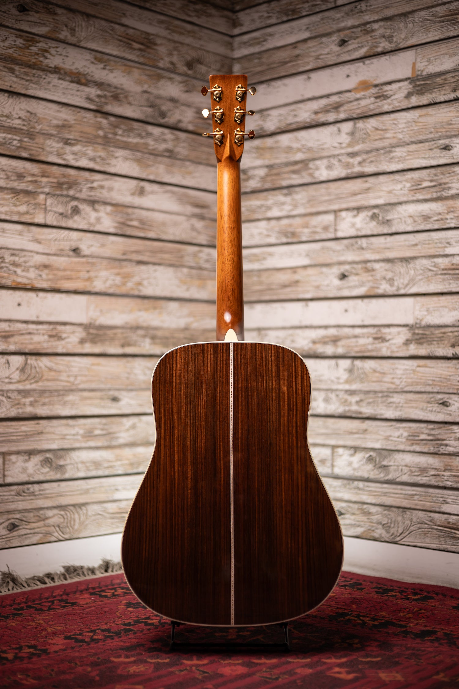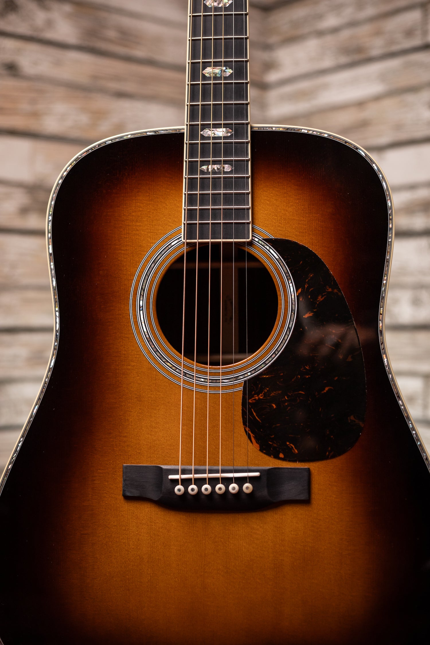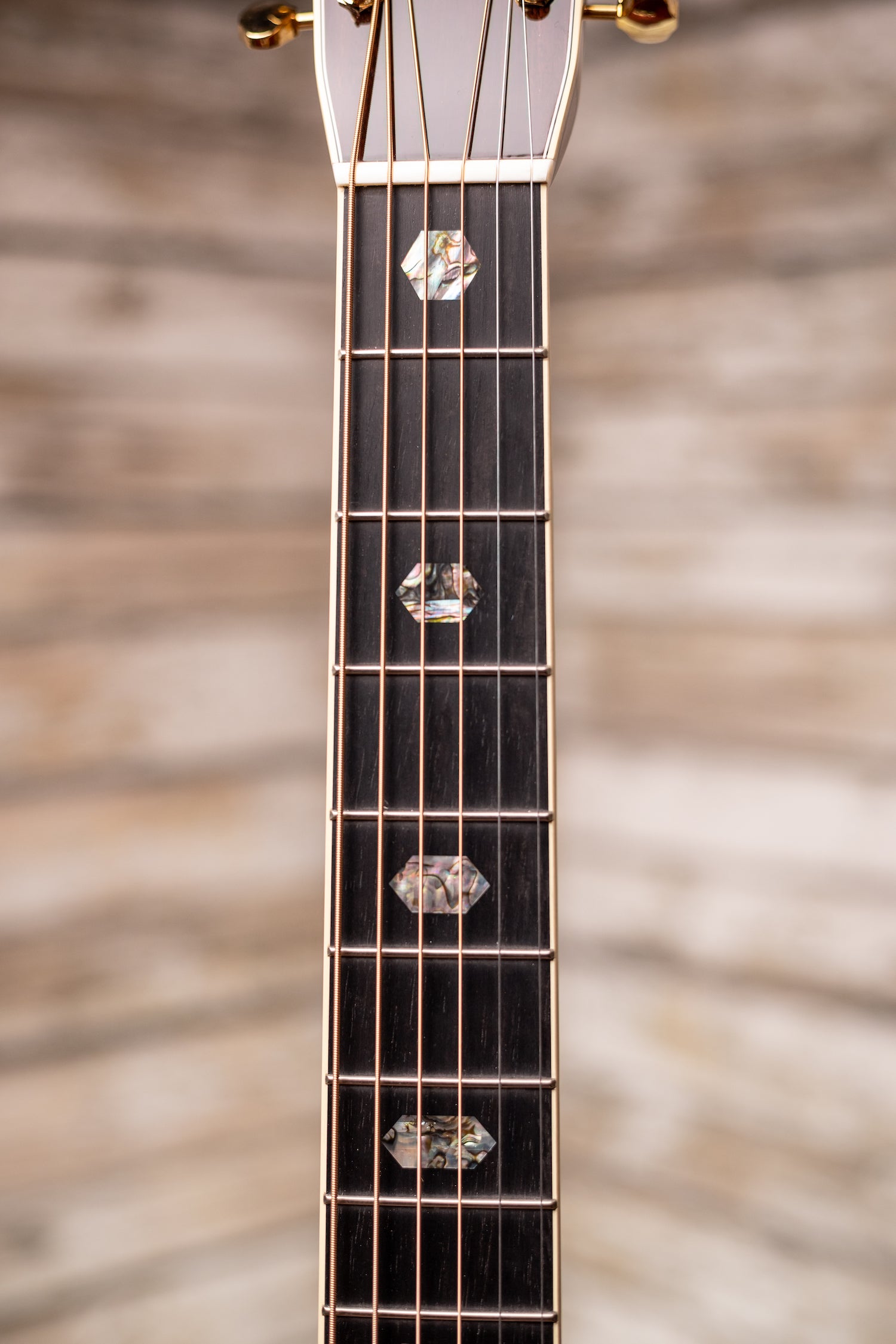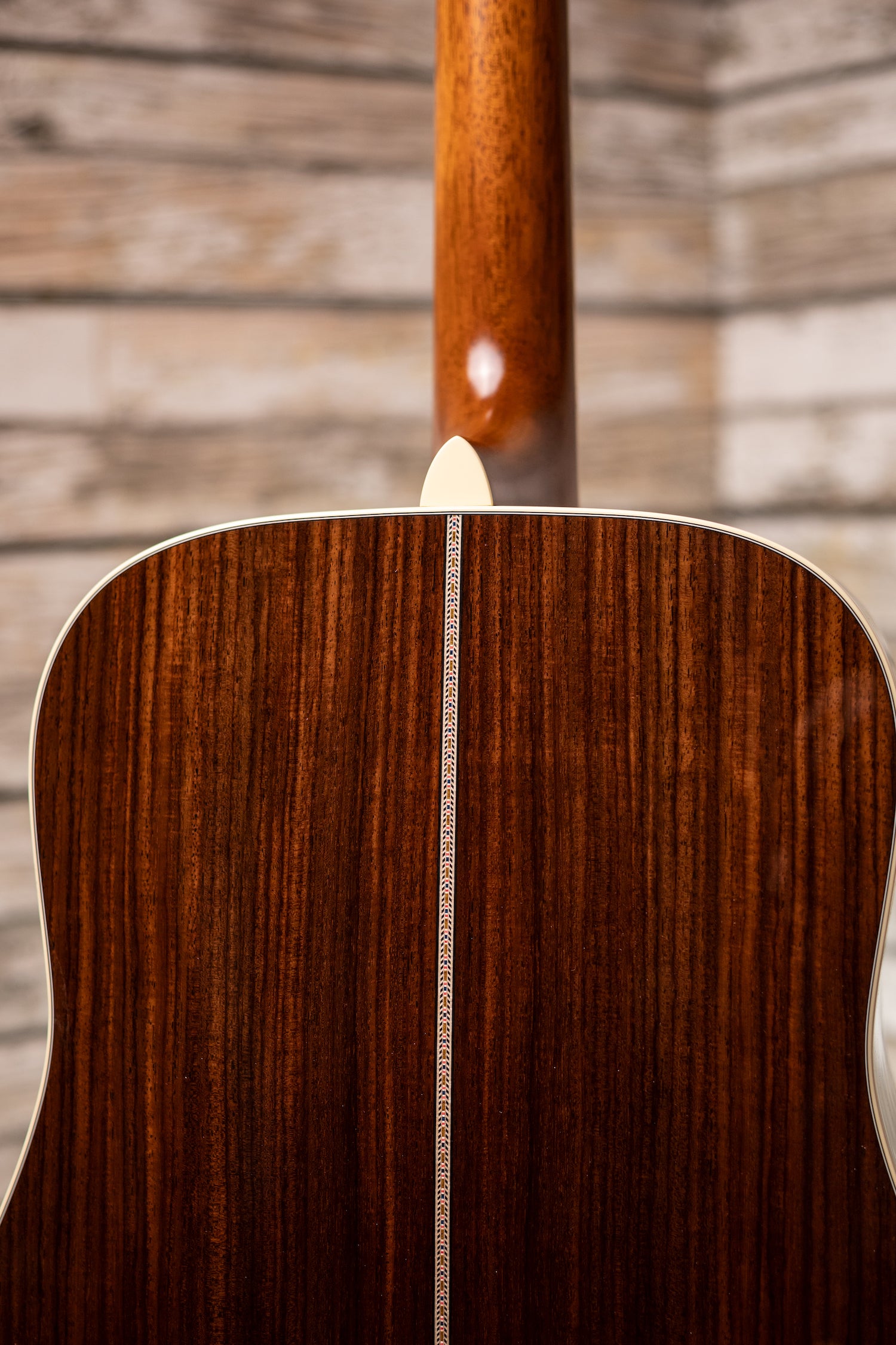 The Martin D-41 is a trusted icon in Martin’s acoustic lineup, blending powerful tone with refined elegance. Its Dreadnought body size delivers a bold, projective sound with strong bass, clear trebles, and rich overtones, making it ideal for players who want their music to fill the room. Handcrafted with a solid spruce top and solid East Indian rosewood back and sides, the D-41 offers a resonant voice that’s balanced across all playing styles. The satin genuine mahogany neck, featuring a Golden Era (GE) Modified Low Oval profile, high-performance taper, and 25.4" scale length, ensures smooth playability. Luxurious abalone details, including the rosette, top-edge trim, and hexagon inlays, elevate its timeless design. Complete with antique white binding, a bound ebony fingerboard, an ebony bridge with bone pins, gold open gear tuners, and a variety of striking gloss options, the D-41 is a guitar you can trust to unleash the artist within.