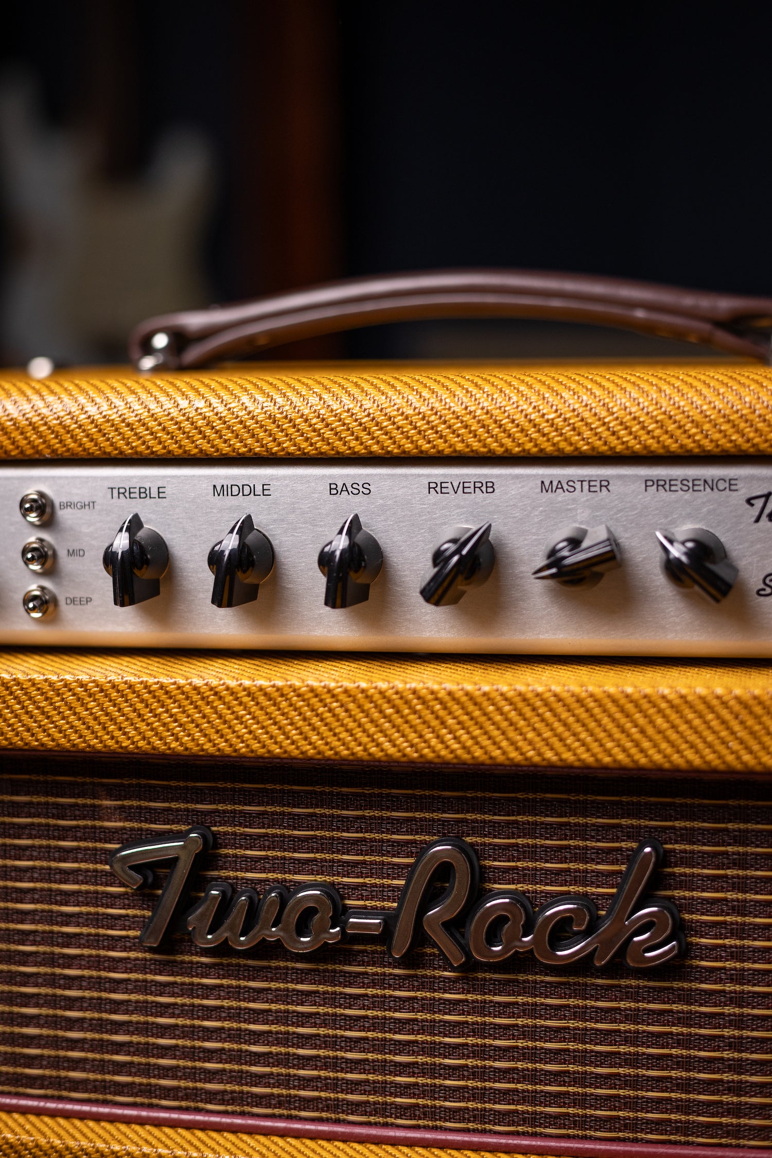 The Two-Rock Studio Signature is the latest generation of the single-channel 35 watt amplifiers. Making some changes to the original Studio Pro 35 to bring the product line current to new techniques, the Signature model remains a 6L6 clean amplifier for a solid pedal platform with some additions that will make the Studio Signature a continued legendary Two-Rock product. New Build Techniques, layouts, and materials implemented over the last few years were the key starting points to this amplifier's new construction. The added boost toggles are an obvious change at first glance, allowing the use of potentiometers with custom tapers. Reverb send control on the back panel and a Return control on the front give room for these toggles. The Gain Structure switch can also be found on the back, allowing the same functions as the flagship Classic Reverb Signature, essentially giving 3 front-end types to this already versatile clean amplifier.