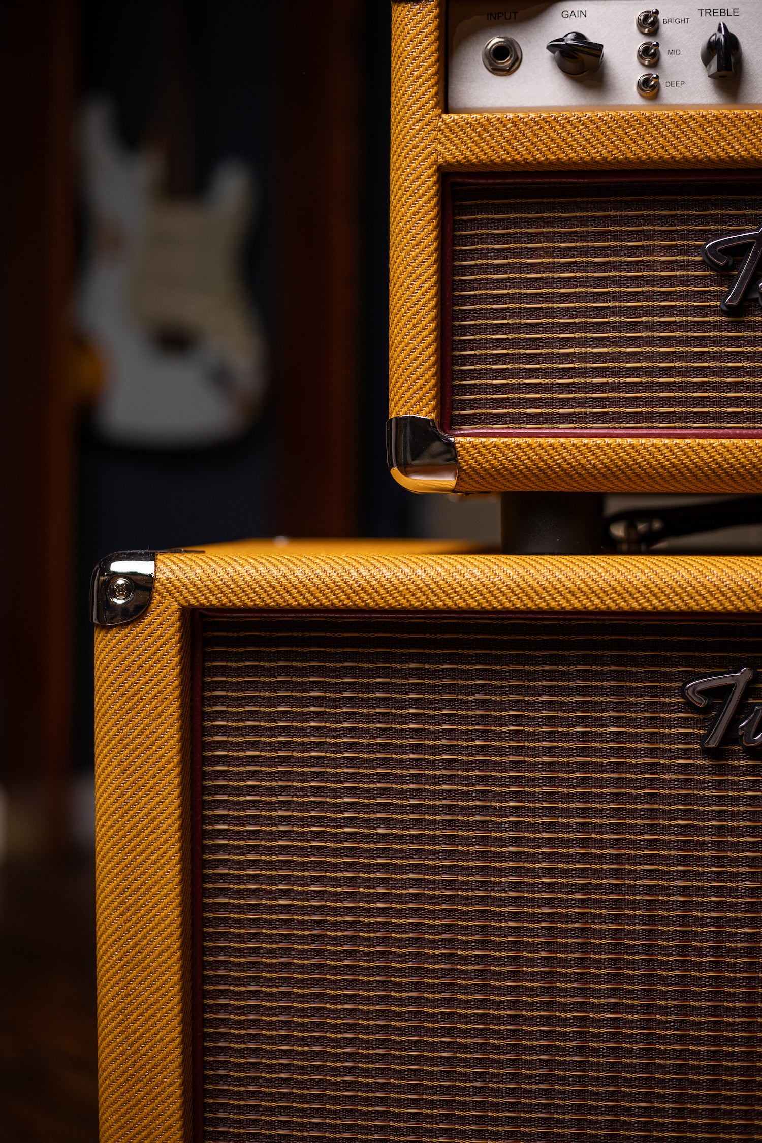 The accompanying cabinet is designed specifically to match Two-Rock's Signature Series Amplifiers. The cab features void free multi-ply birch construction, special bracing, tuned back, sides, and baffle, and tuned rear port. The result is a stunningly lively cabinet with a huge sound-stage and even bass dispersion. This standard 1x12 cabinet is an affordable, portable, lightweight cabinet that comes in Forest Green Suede covering. The power handling is 75W RMS. With a weight of only 36 pounds, this cabinet is Two-Rock's ideal portable setup.