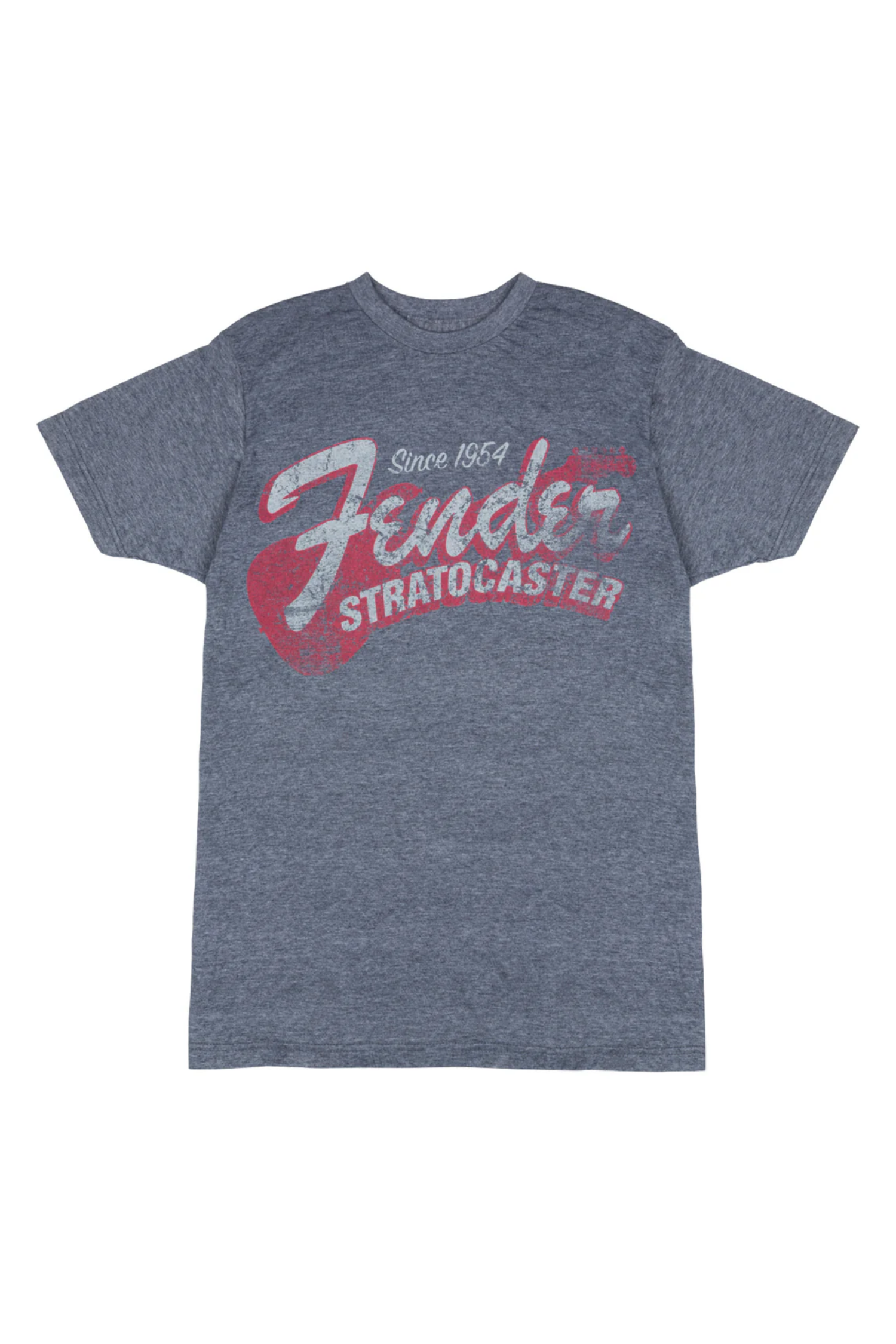 Since 1954, the Stratocaster has been shaping and sculpting the world of popular music...which is why Fender has commemorated the birth of one of the most iconic guitars in the world with this super cool t-shirt! Sporting a classic, distressed Fender Stratocaster insignia on the front, this dark blue tee is the perfect homage to the perfect guitar. 50% Cotton, 50% Polyester, 100% Fender.