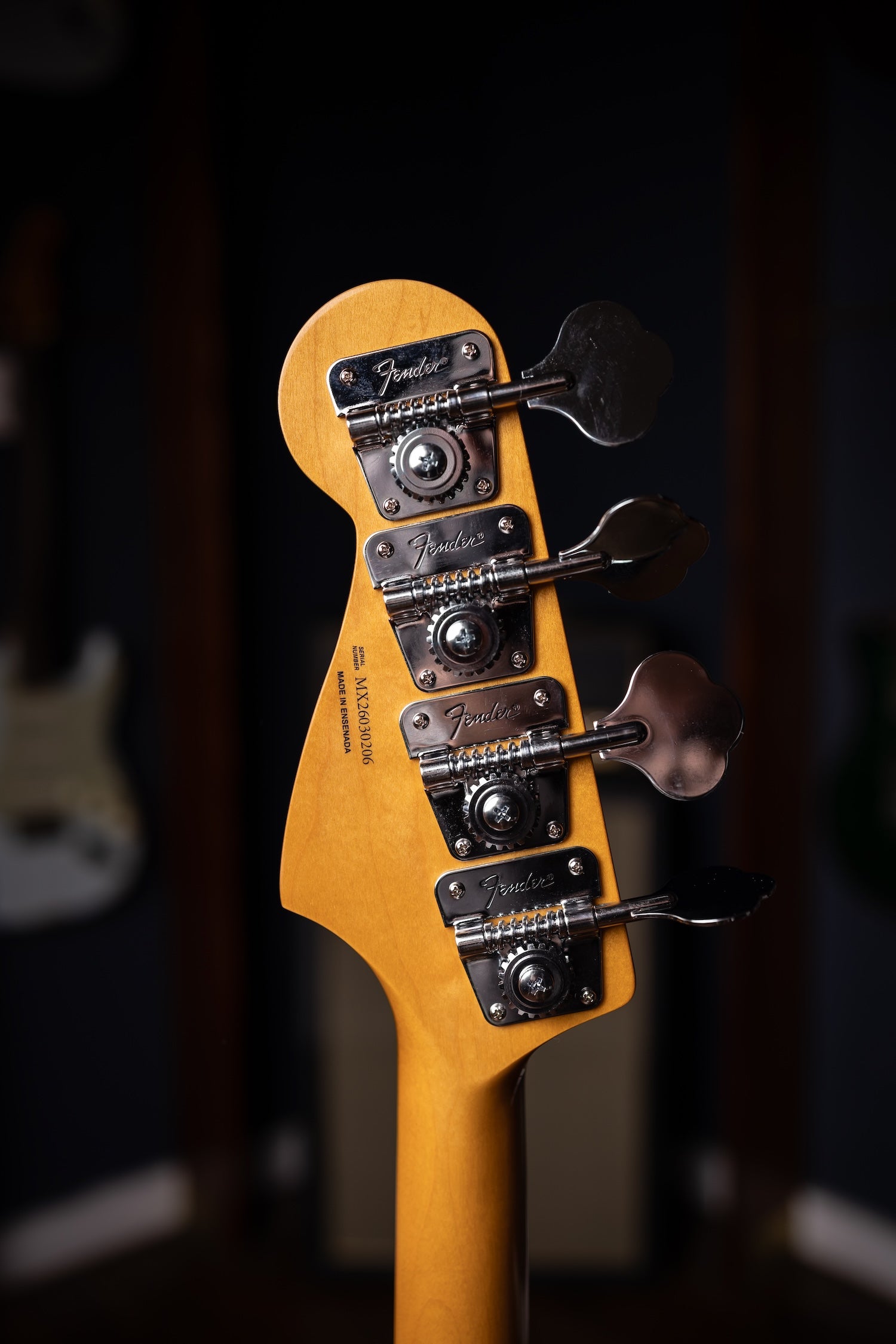 Built with an alder body and a comfortable maple neck, this bass offers smooth playability with a classic 7.25" radius and vintage-style frets. The dual vintage-style single-coil Jazz Bass pickups provide a wide tonal range—from tight, focused lows to growling mids and crisp highs—making it perfect for a variety of playing styles.