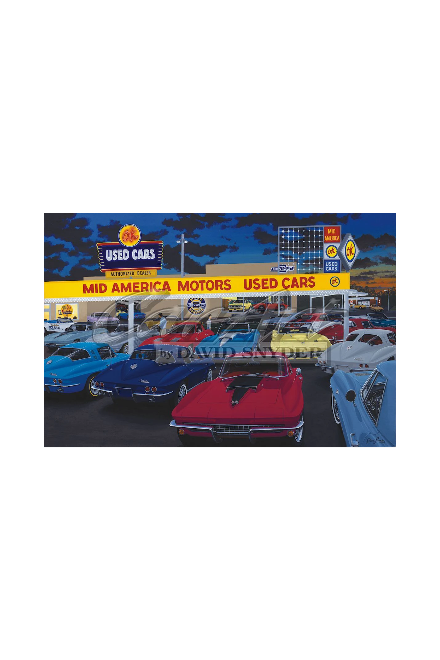 The launch of the 1963 Corvette Stingray caused a sensation. The bold new styling by Larry Shinoda under Harley Earl and engineered by Zora Duntov created the quintessential Corvette. Today the "mid years", 1963-1967 enjoy a status above all other Corvettes and demand the highest prices. By 1968 the "mid years" were last years' design. Many traded in for the new Corvette. In this scene from 1968 at Mid America Motors there are many 1963-1967 Corvettes destined to set record prices at auctions today.