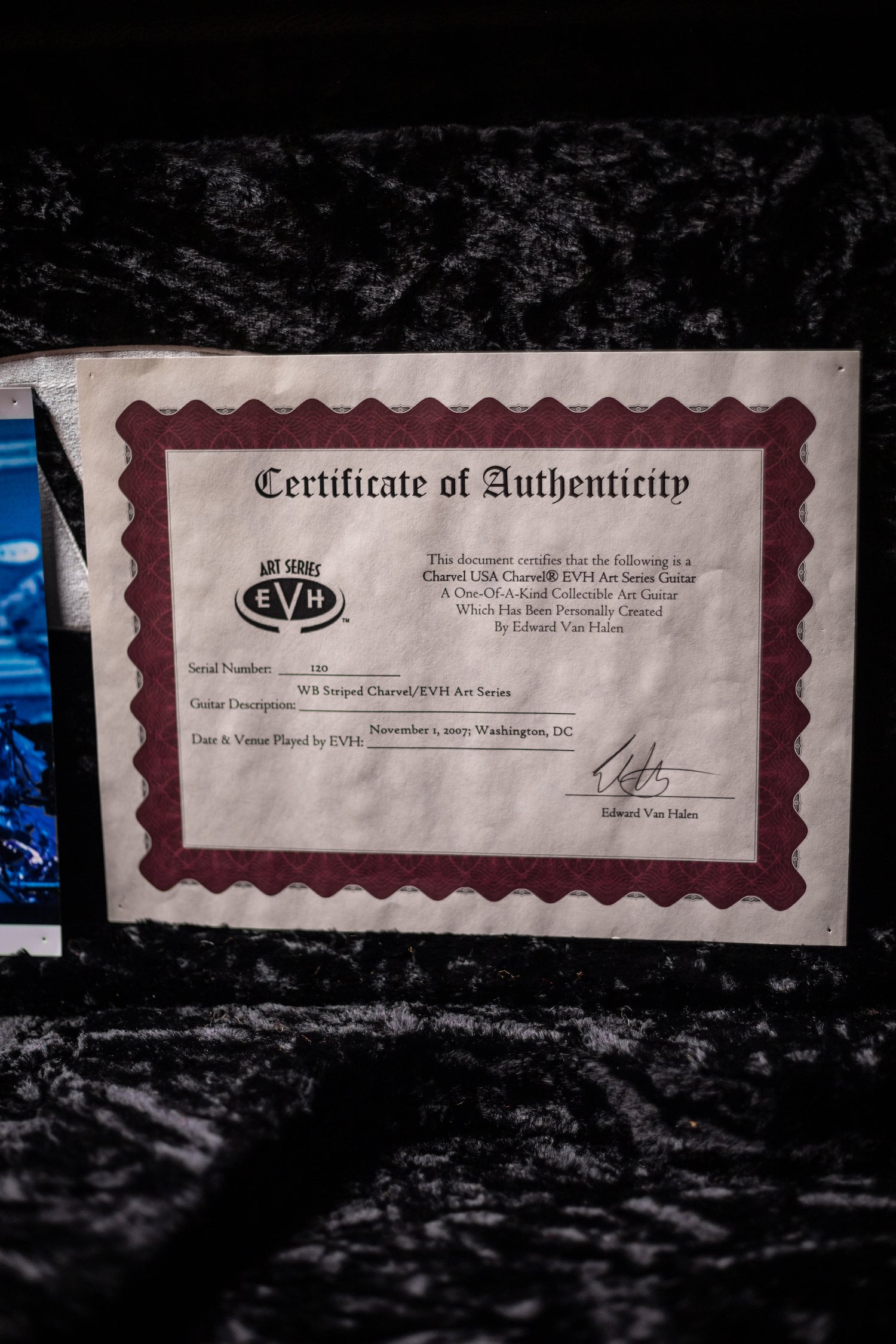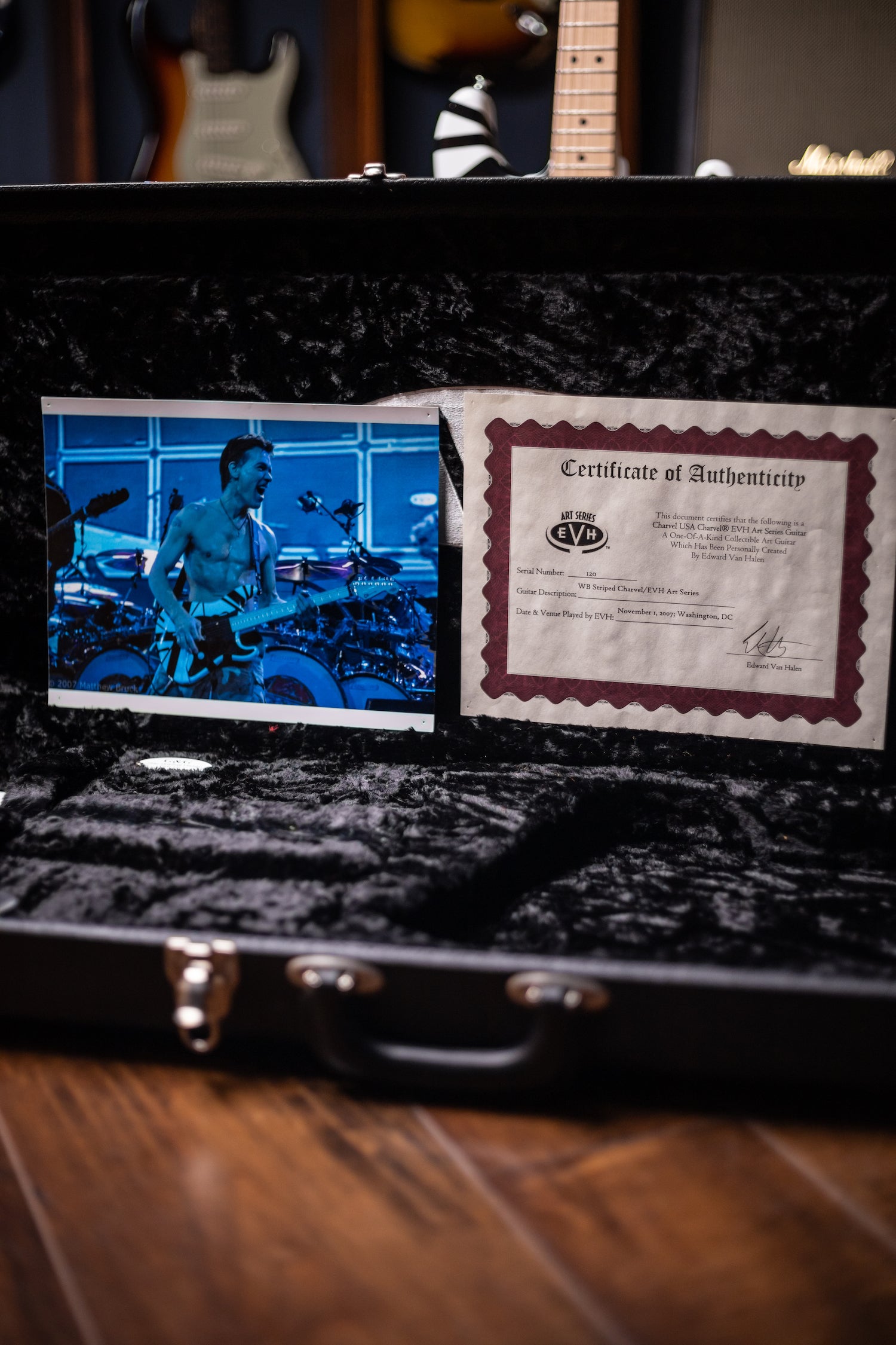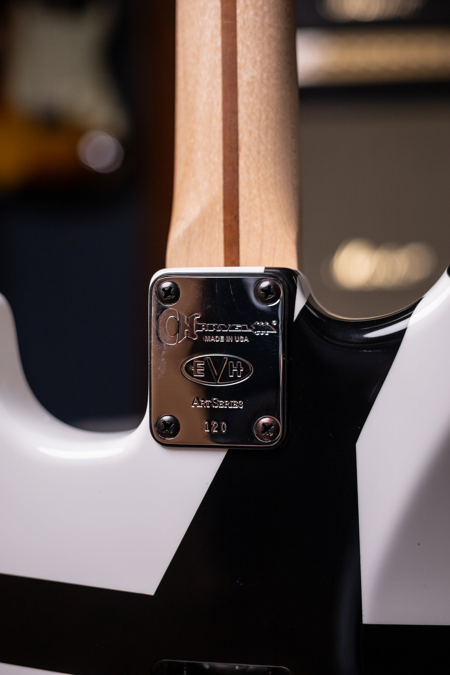 Washington, D.C., is not exactly known for being a hotbed of rock ‘n’ roll rebellion, but when Van Halen brought their tour to the nation’s capital on November 1st, 2007, something extraordinary happened, blending political gravity with rock ‘n’ roll irreverence. With a white and black finish strikingly similar to Eddie’s guitar on the cover of Van Halen’s debut album, we couldn’t think of a more perfect guitar for Eddie to play that night in the nation’s capital, displaying the classic Van Halen aesthetic that’s so ingrained in the DNA of American music!