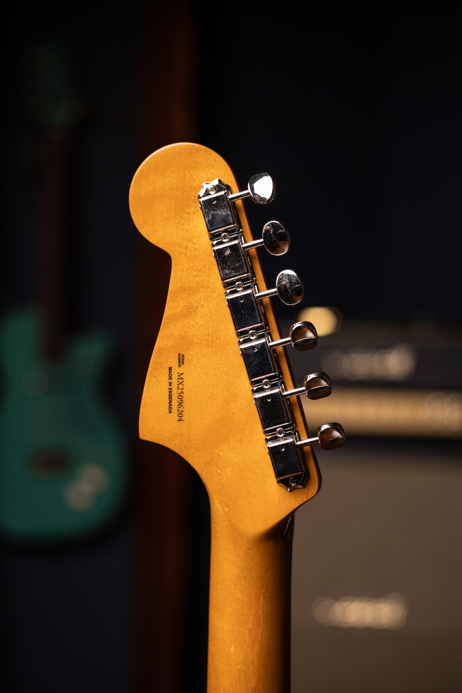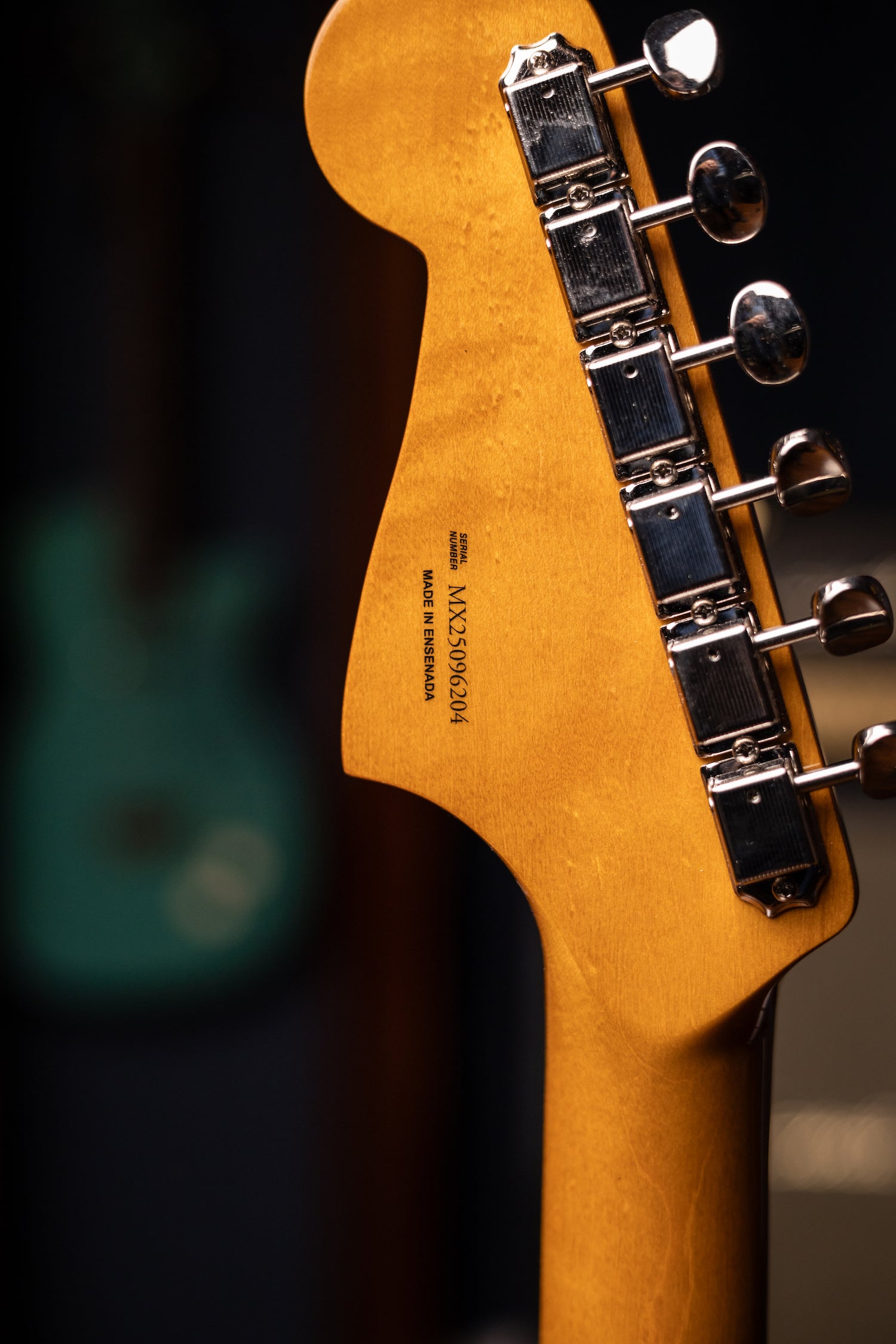 The Fender Limited Edition Vintera II ’50s Jazzmaster revives the offset icon with vintage-accurate style and tone, now offered in a rare Olive finish. Built with an alder body, maple neck, and slab rosewood fingerboard, it delivers authentic ’50s feel with a late-’50s “C” neck profile and 7.25" radius. Vintage-style single-coil Jazzmaster pickups capture the chime and warmth that defined an era, while the classic lead/rhythm circuit and floating tremolo unlock the model’s trademark versatility. With its gold anodized pickguard, parchment knobs, and nickel/chrome hardware, this limited-run Jazzmaster is as striking to look at as it is inspiring to play.