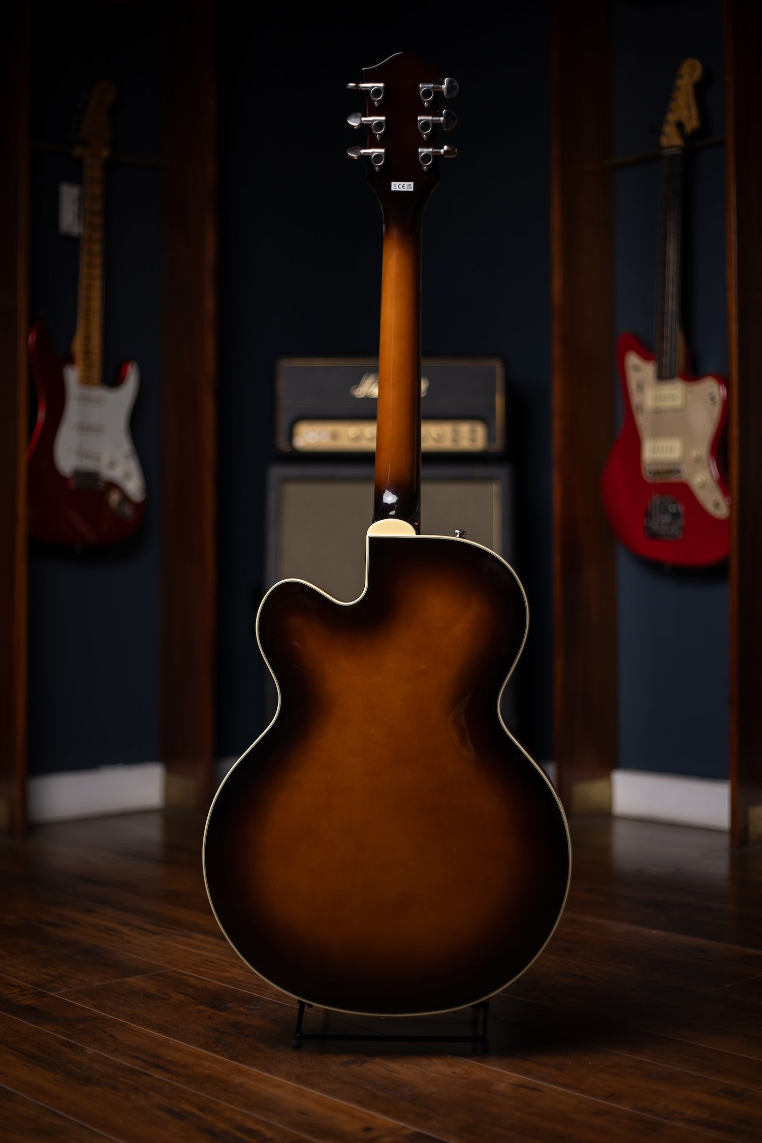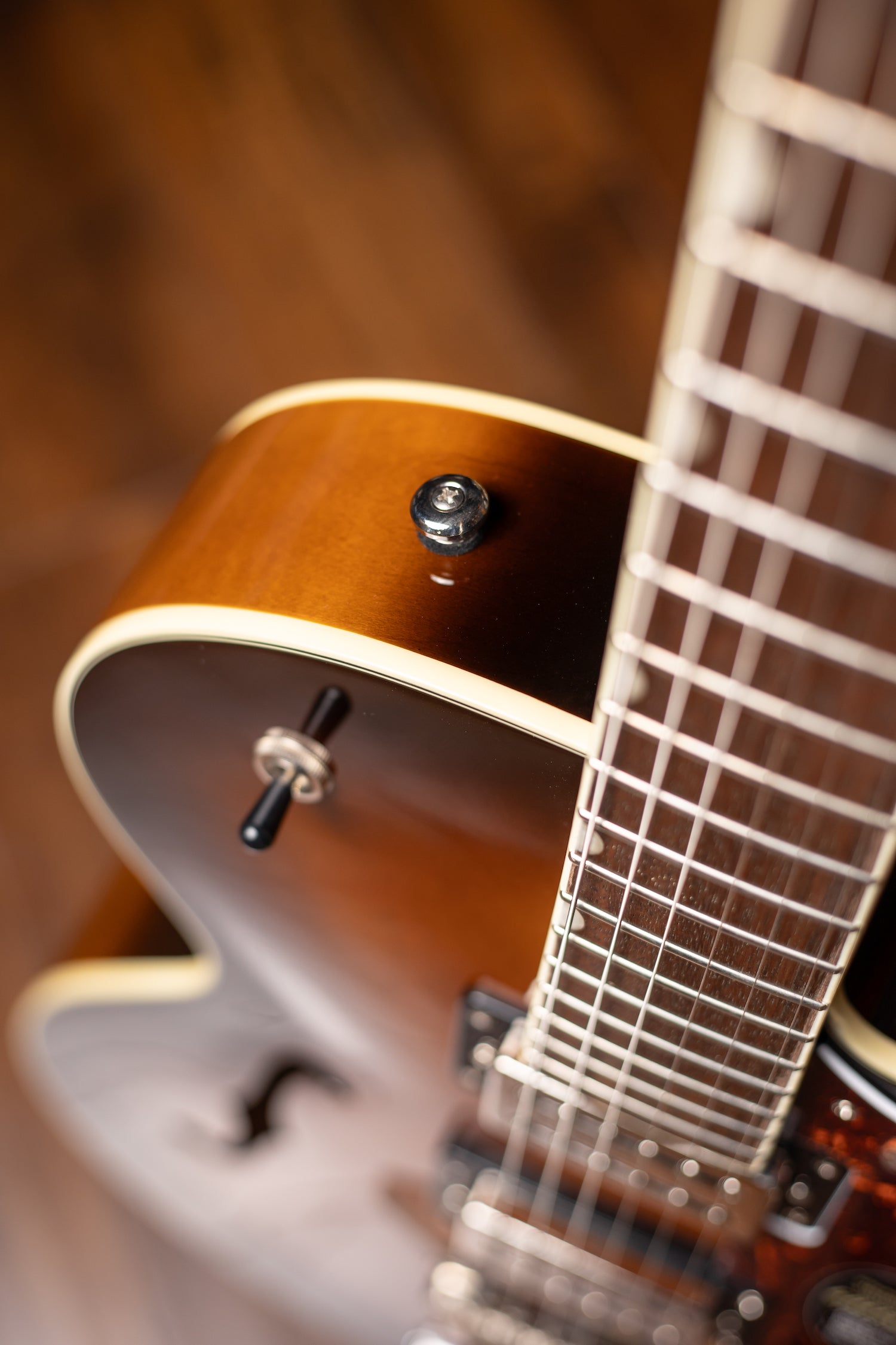 - Fully hollow arched maple body for rich fullness, deep resonance and "big-body sound"