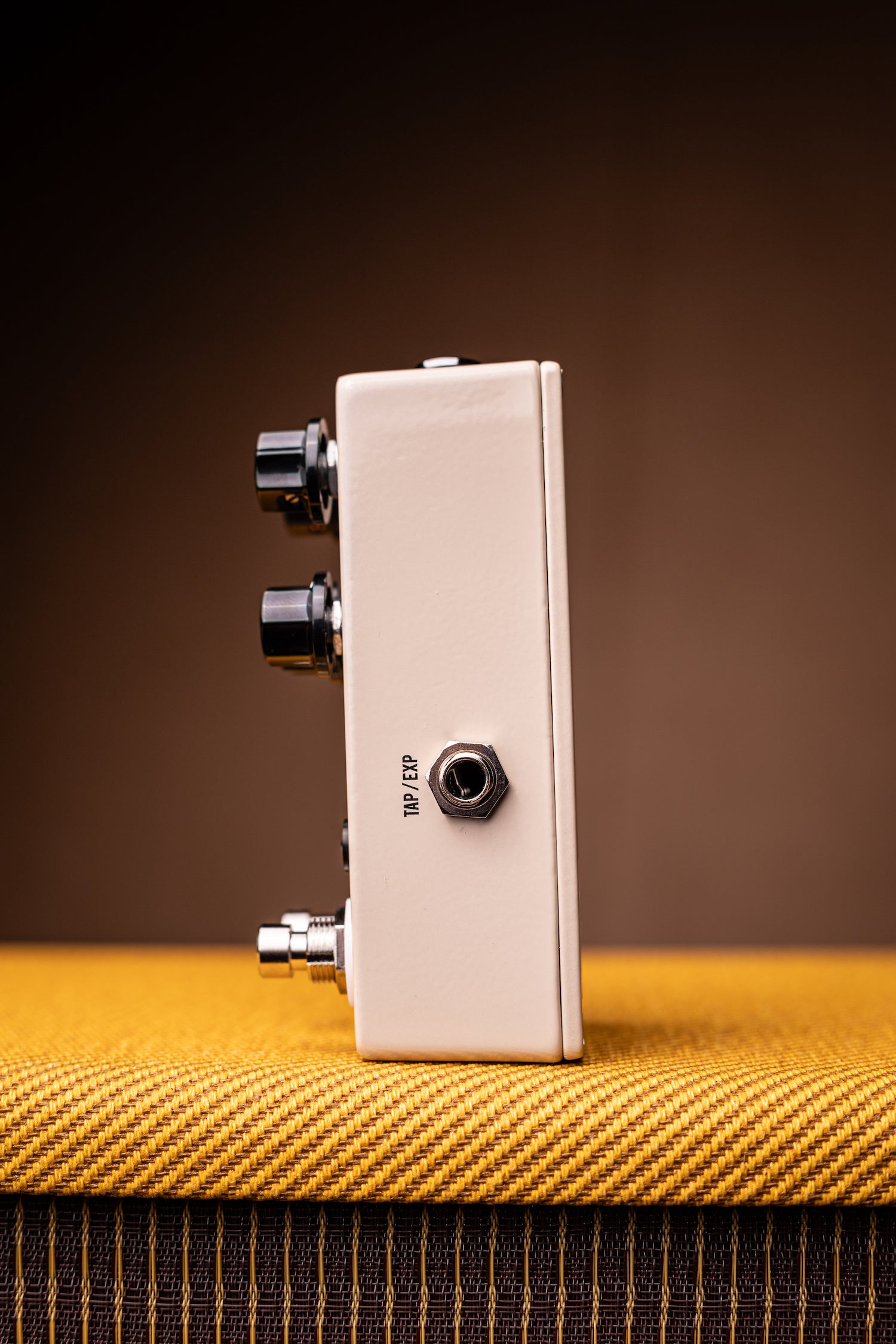 The Kodiak also features a Tap/Expression jack on the right side of the pedal. Plug in an external tap tempo or an expression pedal to control the speed of the tremolo. Select either TAP or EXP via the switch on the left side of the Kodiak.
