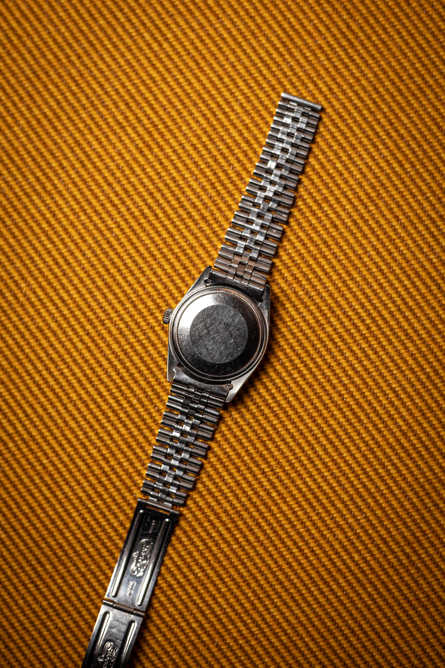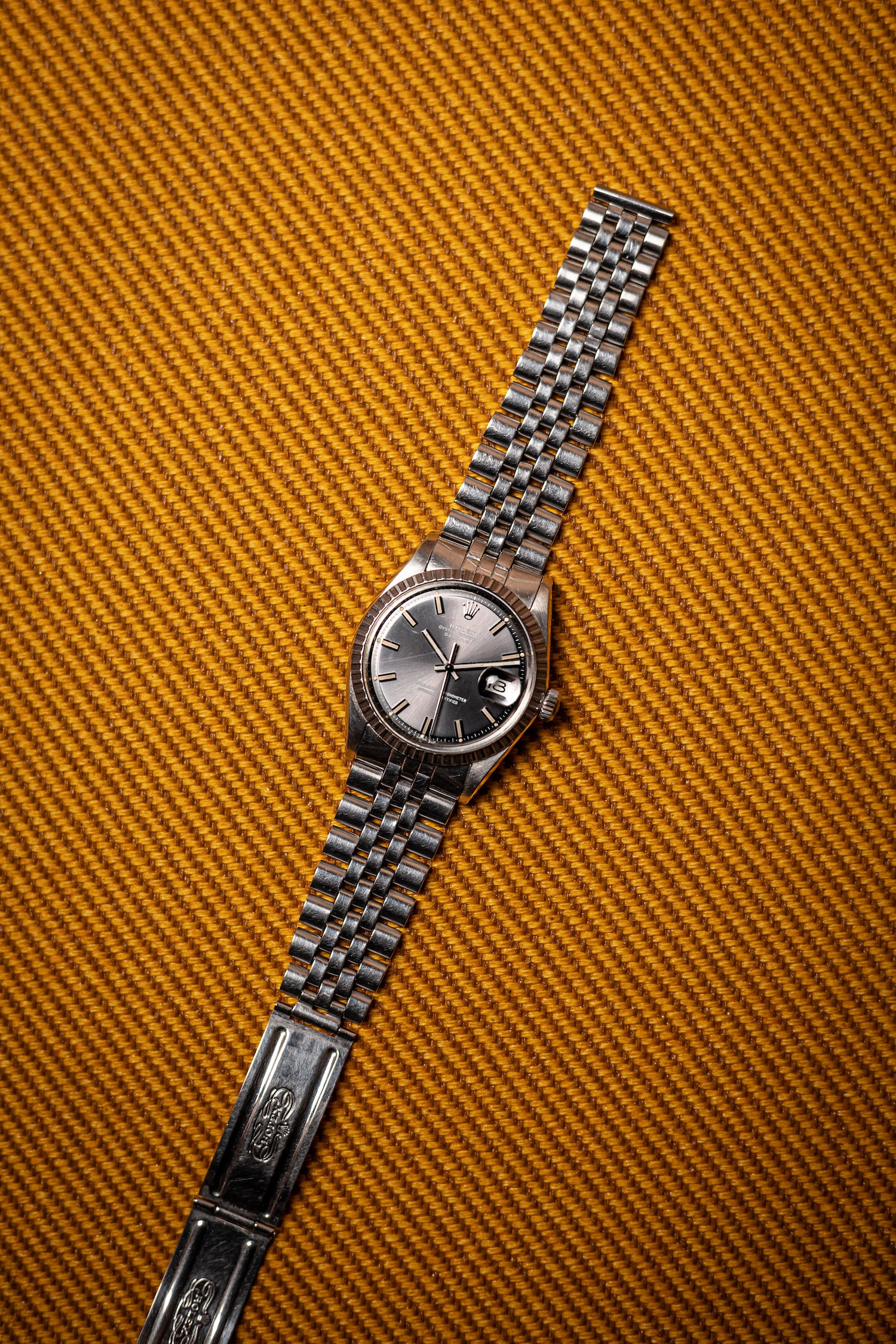 Housed in a 36mm steel case with the bygone “machine-turned” bezel, this watch is in excellent condition for its age. The dial remains vibrant, and the Wide Boy markers remain bold and crisp with no tarnishing. The case, Jubilee bracelet, and crystal show light surface scratches throughout. The watch is powered by one of the brand’s most reliable and well-regarded workhorses of the period – the Caliber 1570, a COSC-certified automatic movement with hacking seconds.