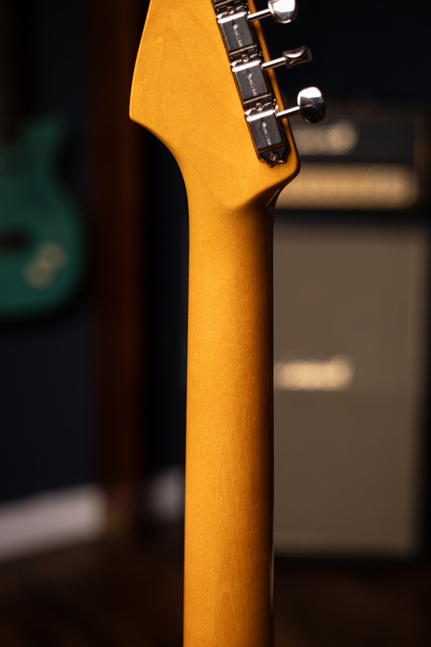The Fender® American Vintage II series presents a remarkably accurate take on the revolutionary designs that altered the course of musical history. Built with period-accurate bodies, necks and hardware, premium finishes and meticulously voiced, year-specific pickups, each instrument captures the essence of authentic Fender craftsmanship and tone.
