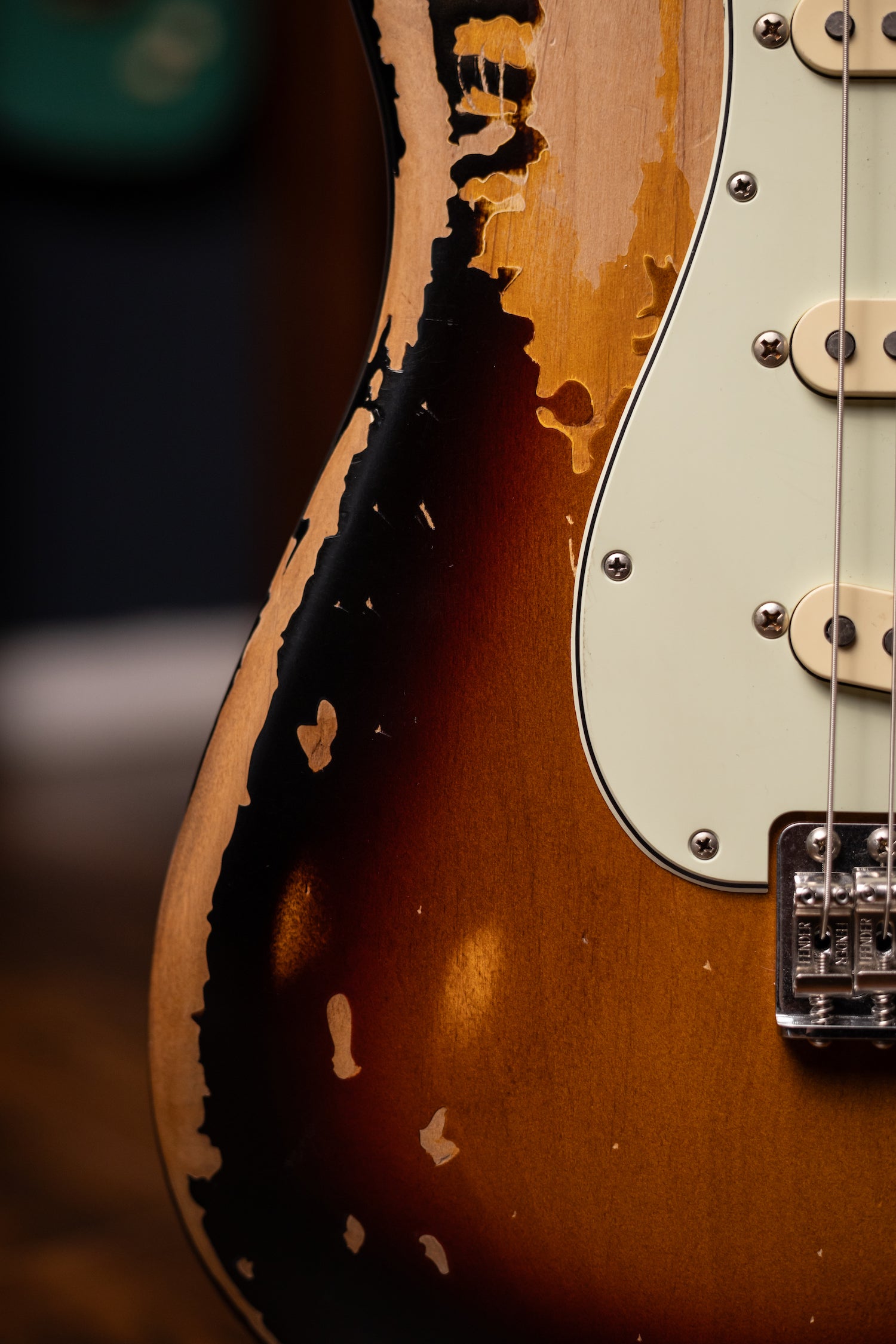 With its well-worn finish and bold tones, the Mike McCready Stratocaster® resonates with the soulful essence of the iconic Strat that has powered Pearl Jam's chart-topping hits and transcendent live performances across countless studios and stages..