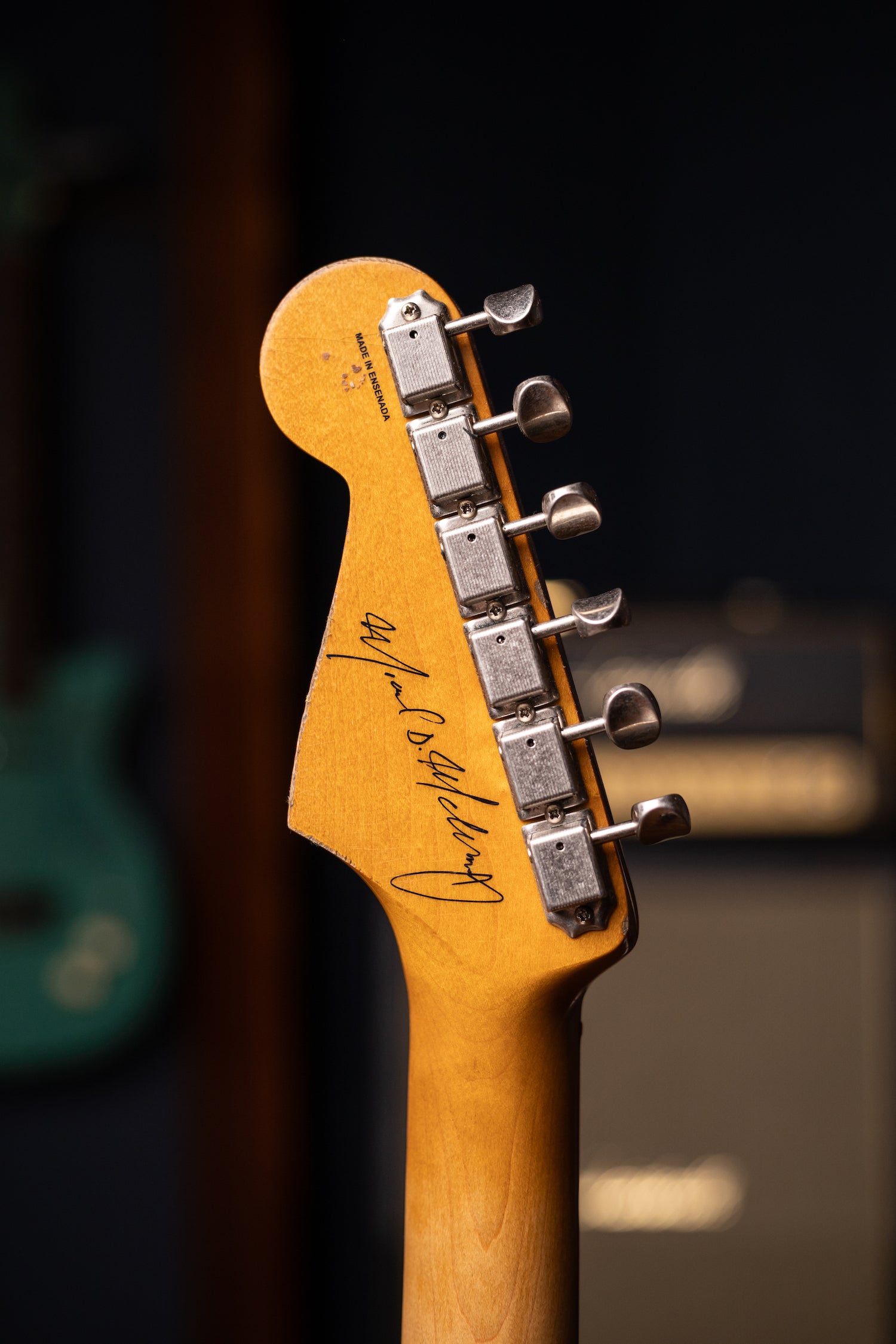 The Mike McCready Stratocaster® features a hand-crafted, heavily Road Worn® lacquer finish over an alder body, recreating the battle scars Mike's own Strat has earned over three decades of grueling, sold-out tours and legendary performances. The comfy 9.5" radius slab rosewood fingerboard on a slim "C" maple neck are shaped to match McCready's treasured 1960 Strat, while the custom Mike McCready Stratocaster pickups are voiced to replicate Mike's vintage single-coils for the same timeless tone, passion and energy that define his signature sound. The vintage-style synchronized tremolo, bent-steel saddles and cold-rolled steel block ensure the purest Fender tone and performance.