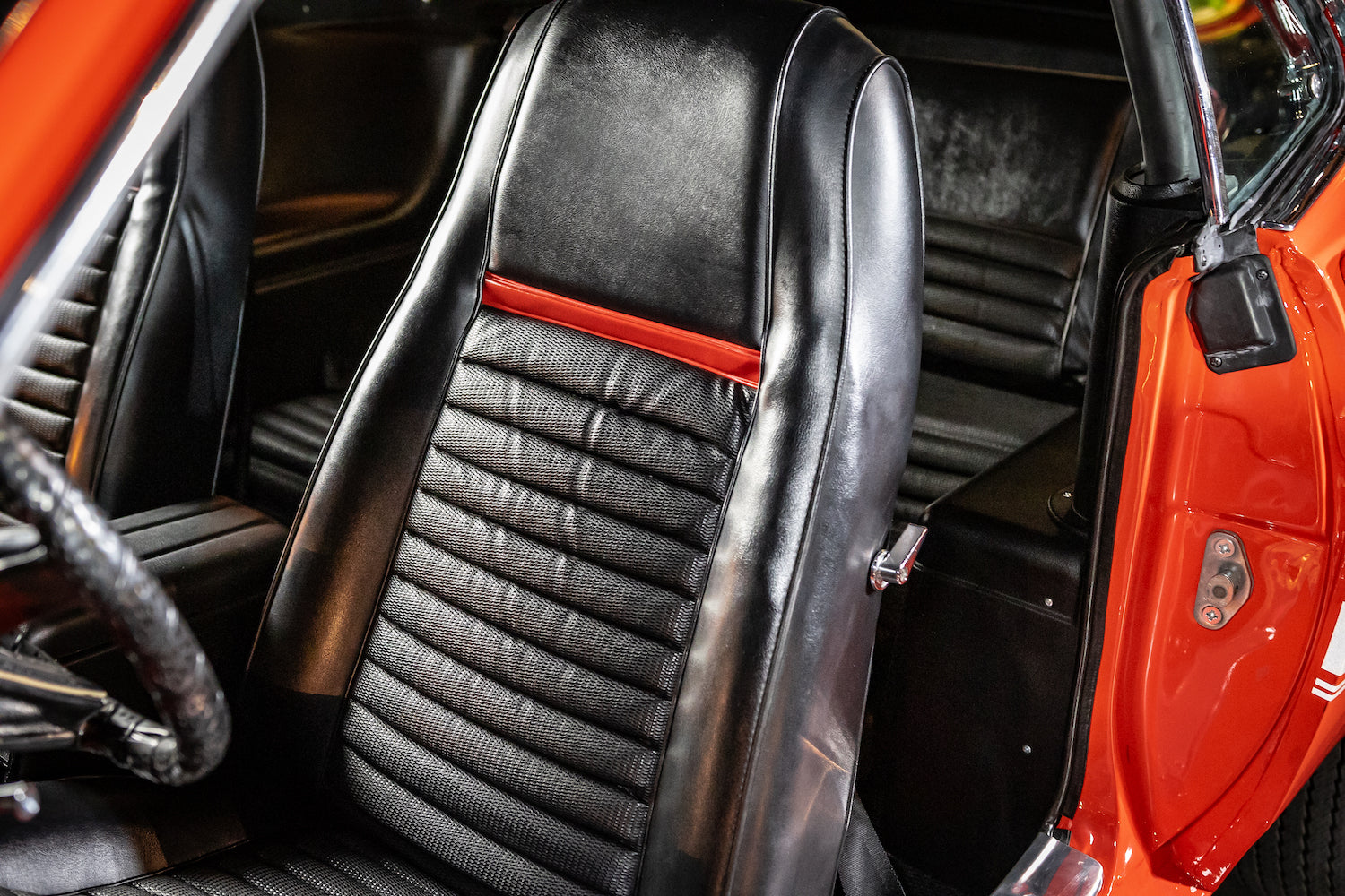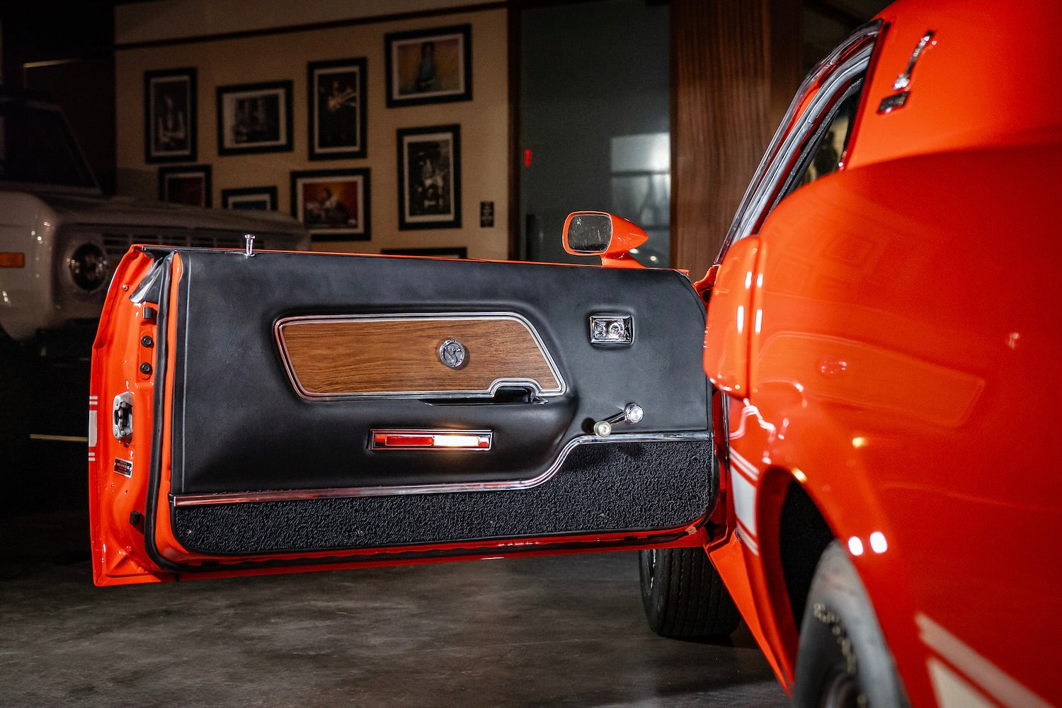 Our 1969 Shelby GT350H Fastback stands as a well-preserved example of that special collaboration. Retaining its correct Shelby-specific bodywork, interior appointments, and original powertrain, the car reflects the unique blend of factory Mustang production and Shelby refinement that defined the era. The fiberglass hood, front and rear fascias, signature striping, and Shelby badging and performance upgrades, combine to create a car that feels distinctly separate from a standard Mustang of the period. Supported by both Shelby & Ford documentation, this GT350H is reported to be the only car built for the Hertz Rent-A-Racer program that was finished in this specification—Competition Red over a Black Knit/Corinthian Vinyl interior.