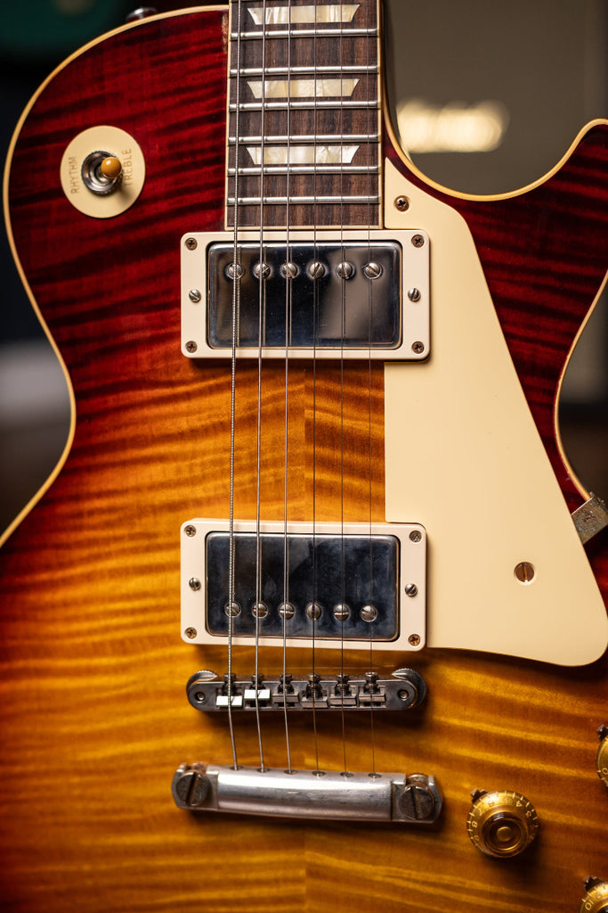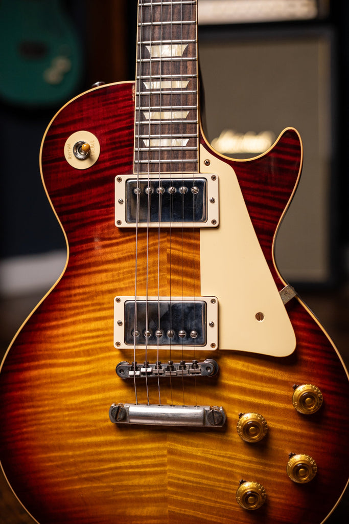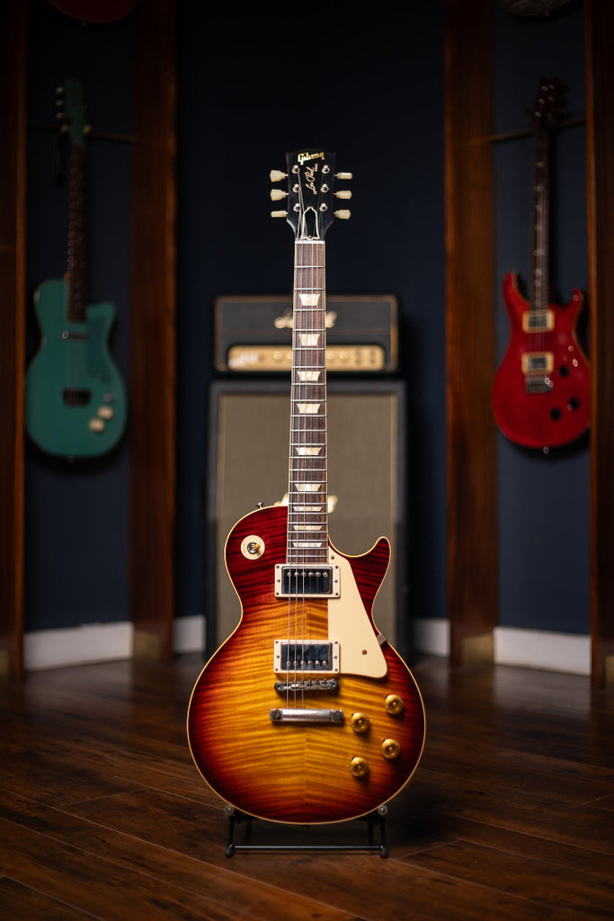 All these reasons and more made the 1959 Les Paul Standard the most coveted and legendary guitar on the planet. Gibson Custom Shop's 60th Anniversary 1959 Les Paul Standard is not just a tribute to the priceless original models -- it's a clone of them. From laser-scanned dimensions to chemically-recreated plastics to color-matched shades of sunburst, every element has been rendered in unbelievable detail. It represents the culmination of yearly advancements to accuracy and authenticity since Gibson Custom Shop began examining vintage Les Pauls over twenty years ago..