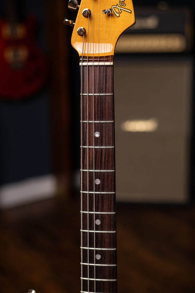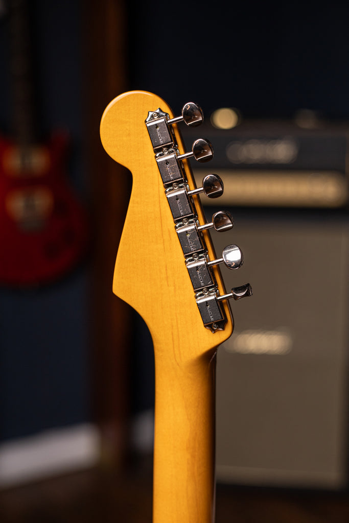 The Fender® American Vintage II series presents a remarkably accurate take on the revolutionary designs that altered the course of musical history. Built with period-accurate bodies, necks and hardware, premium finishes and meticulously voiced, year-specific pickups, each instrument captures the essence of authentic Fender craftsmanship and tone.