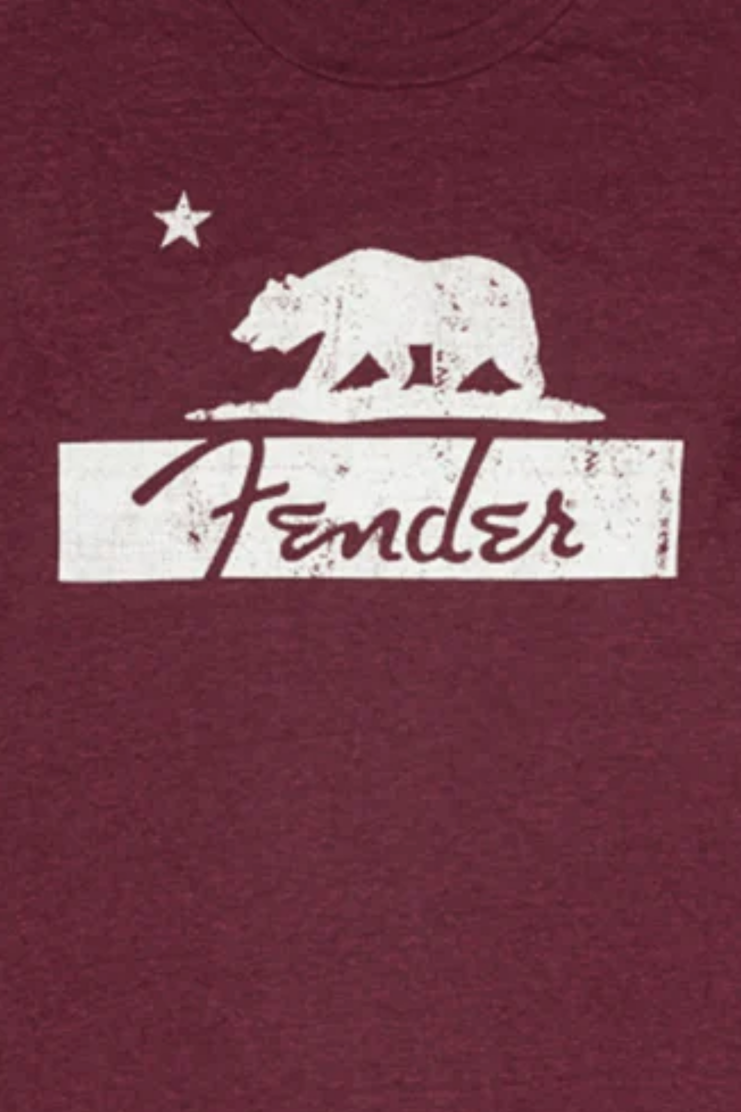 Fender was born in California - so why wouldn't they use the state symbol as part of their apparel line? This Burgundy Bear T-Shirt sports the Fender® logo beneath the image of the California Grizzly Bear. 85% Polyester and 15% Cotton. 100% Fender.