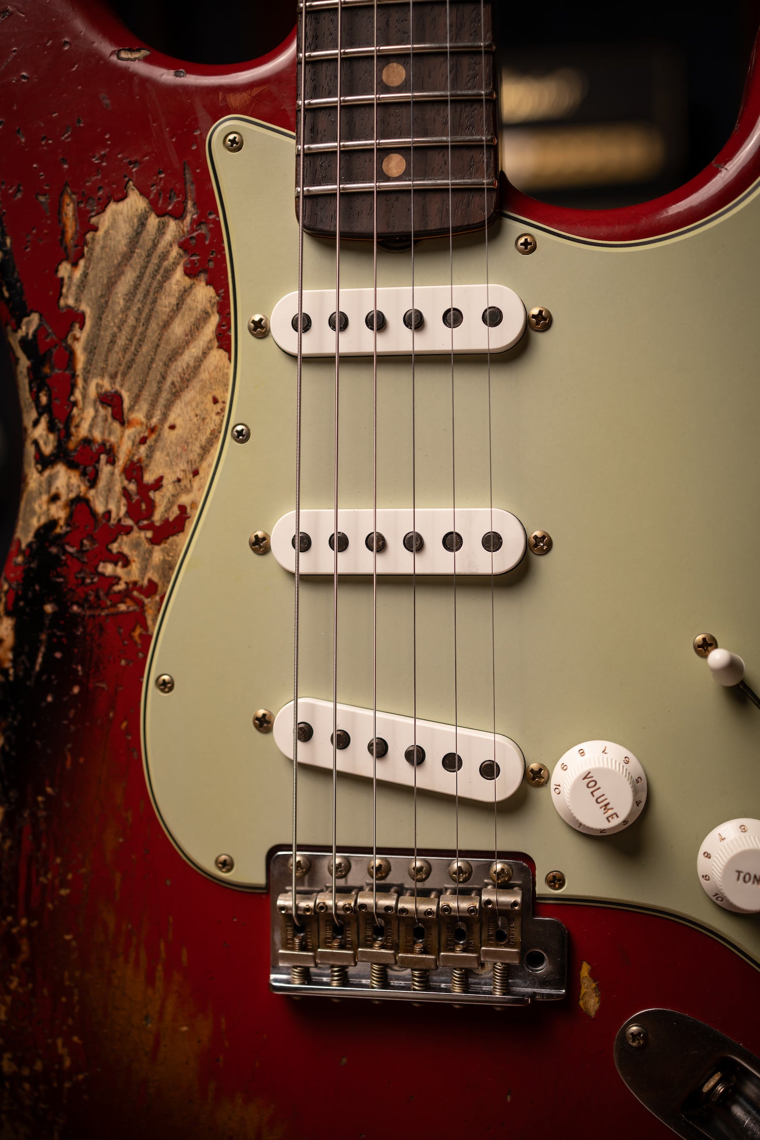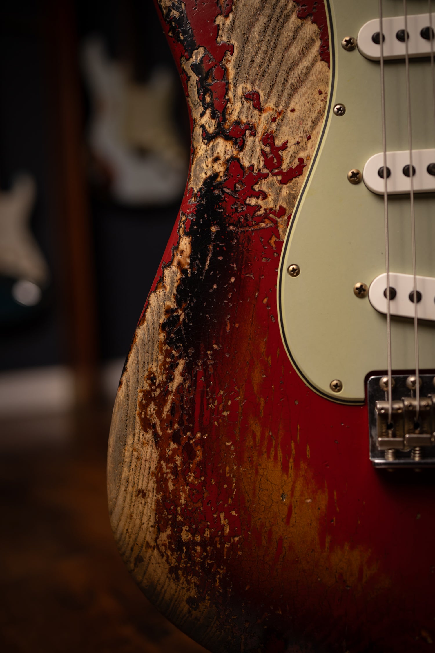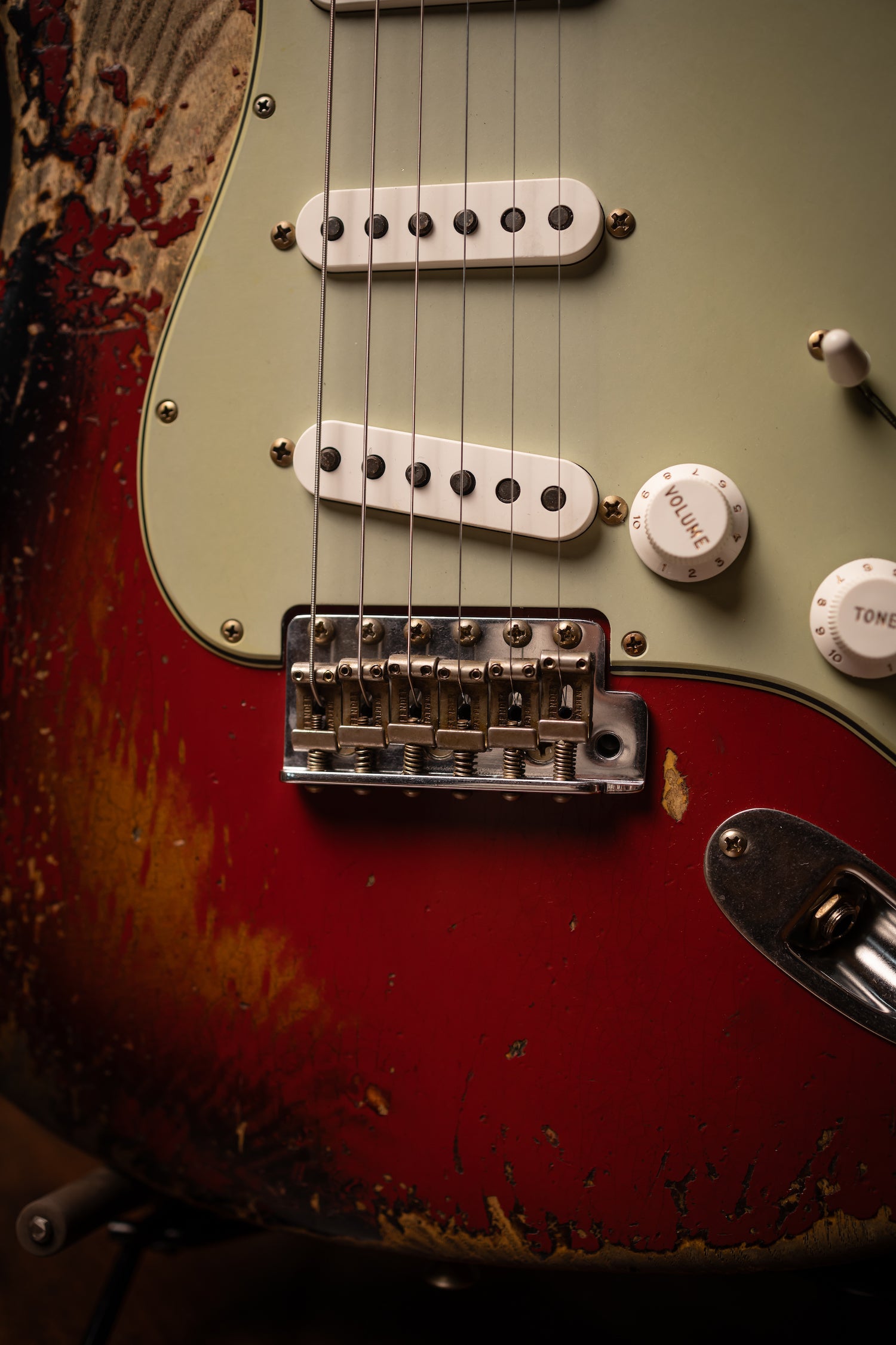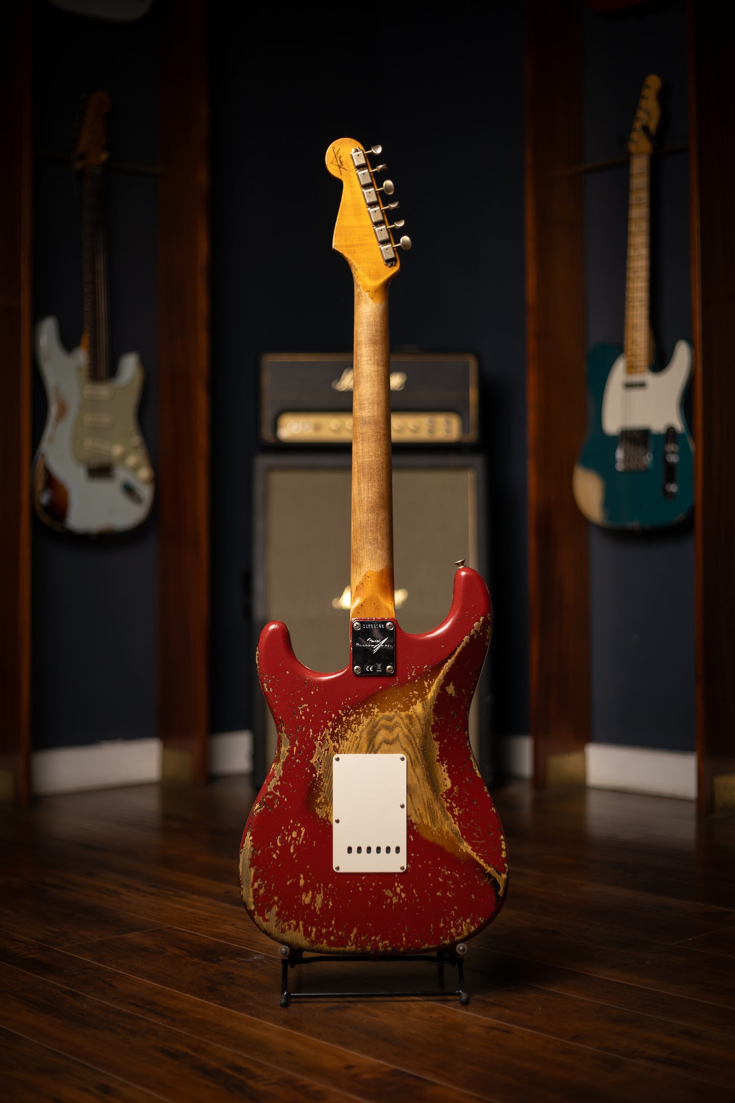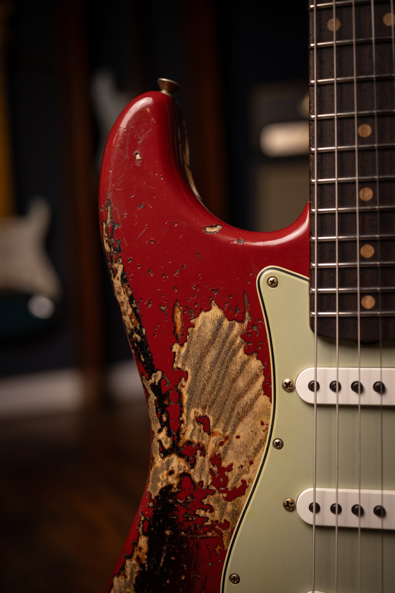 Super Heavy Relic® Lacquer Finish; 2-Piece Select Ash Body; Quartersawn Maple Neck with '60s-Style Oval "C" Back-Shape; 3A Rosewood Fingerboard; 9.5" (241 mm) Radius; 21 Narrow Tall (6105) Frets; Custom Shop Hand-Wound Fat '60s Single-Coil Strat® Pickups with RWRP Middle; Vintage Modified Strat® #2 Wiring; 5-Way Switch; 3-Ply Parchment Pickguard; Custom Shop Vintage Synchronized Tremolo; Vintage-Style Tuning Machines with Fender® Logo; Bone Nut; American Vintage '59-'64 String Tree; Deluxe Hardshell Case; Strap; Certificate of Authenticity.