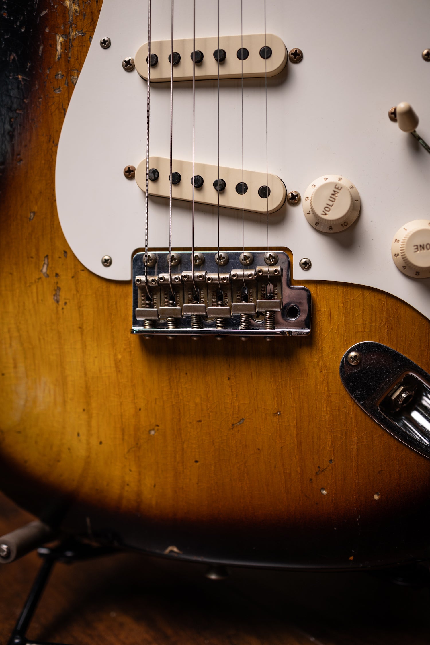 | Bridge: | 6-Saddle Vintage-Style Synchronized Tremolo with Bent Steel Saddles |