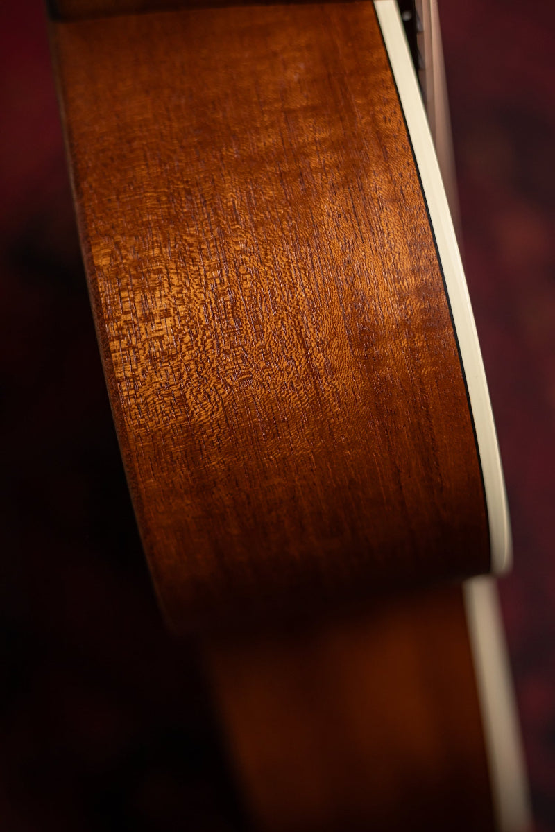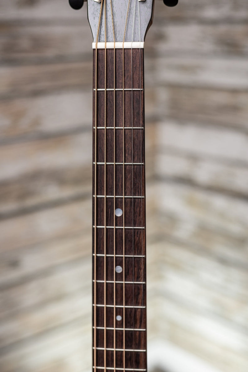 Skillfully crafted from a solid spruce top and mahogany back and sides with antique white binding, a modified low oval neck with a Performing Artist taper, and a rosewood fingerboard and bridge, this guitar produces beautiful dynamic tones that will please the most discerning musician.